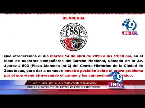 Integrantes del Frente Social por la Soberanía Zacatecana advirtieron que el campo mexicano atraviesa una crisis estruc...