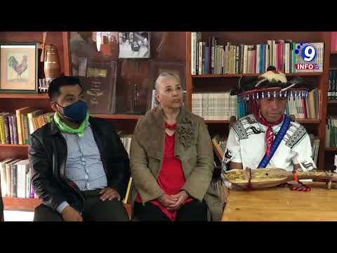 Mujeres Wixaritaris, miembros del colectivo de los Pueblos Originarios, colectivos en defensa del Cerro del Padre y auto...